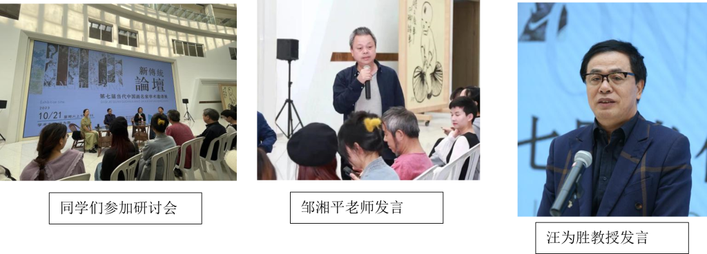研讨会上,汪为胜教授强调参与本次展览的名家均在全国美展、北京双年展等全国性大展中有获奖记录,作品呈现出的不同面貌非常值得同学们学习。汪教授向同学们介绍了新传统的内涵,他指出一定要重视传统,也就是中国画基本功的锤炼。邹湘平老师在研讨会上发表讲话,对新传统进行了进一步诠释。